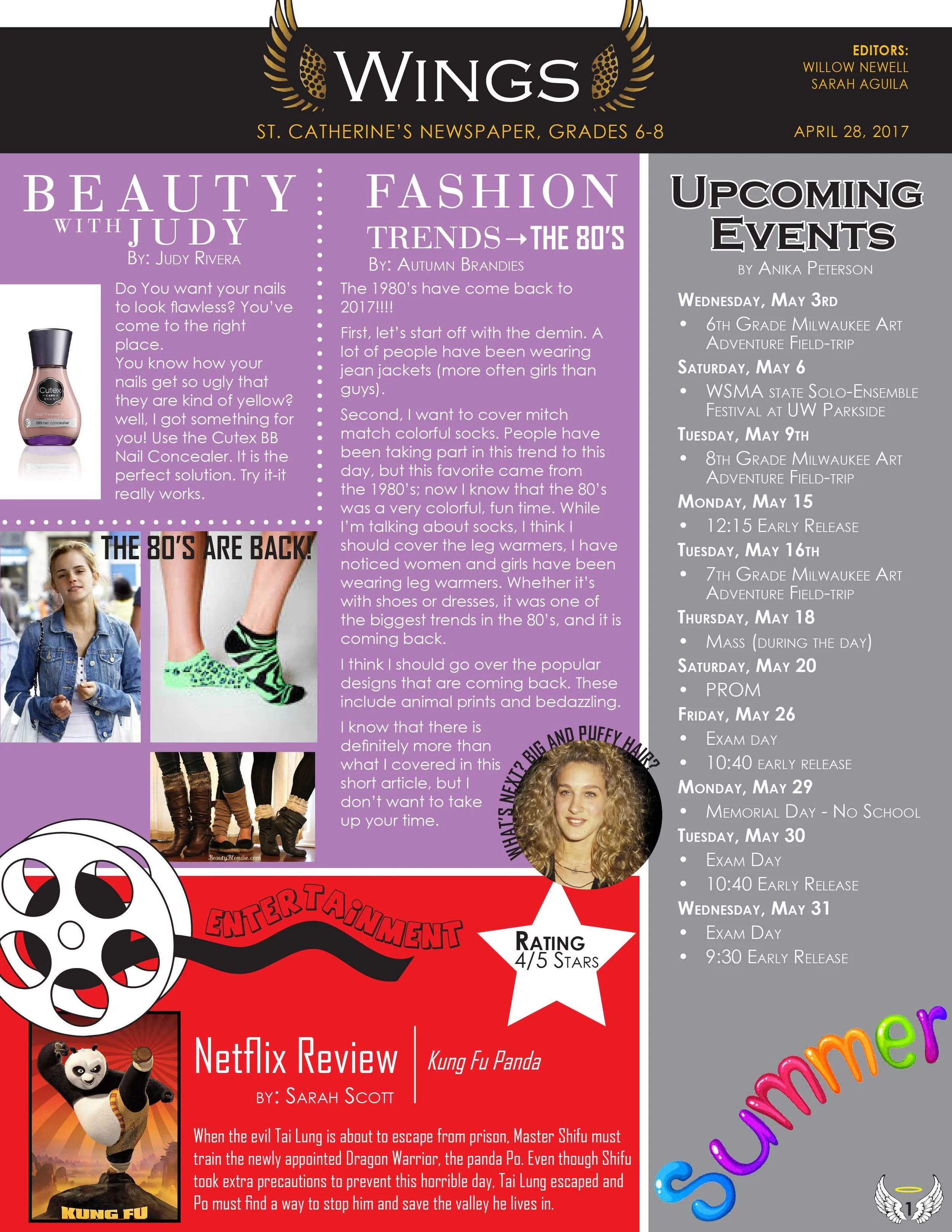 Under the direction of Adviser, Sarah Aguila, newspapers are produced throughout the school year.